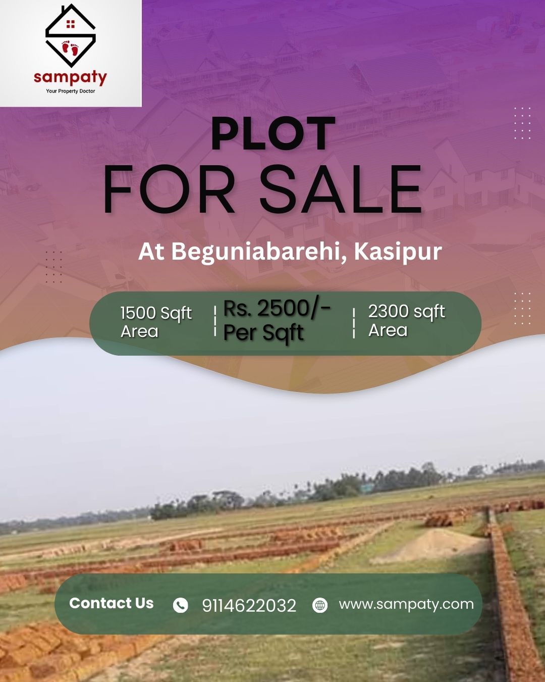 1500 sqft & 2300 sqft @ Rs. 2500/- per sqft plot for sale at Beguniabarehi, Kasipur.