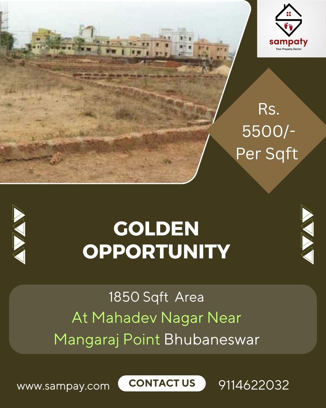 1850 Sqft area @ Rs.5500/- per sqft plot for sale at Jharpada, Mahadev Nagar near Mangaraj Point.