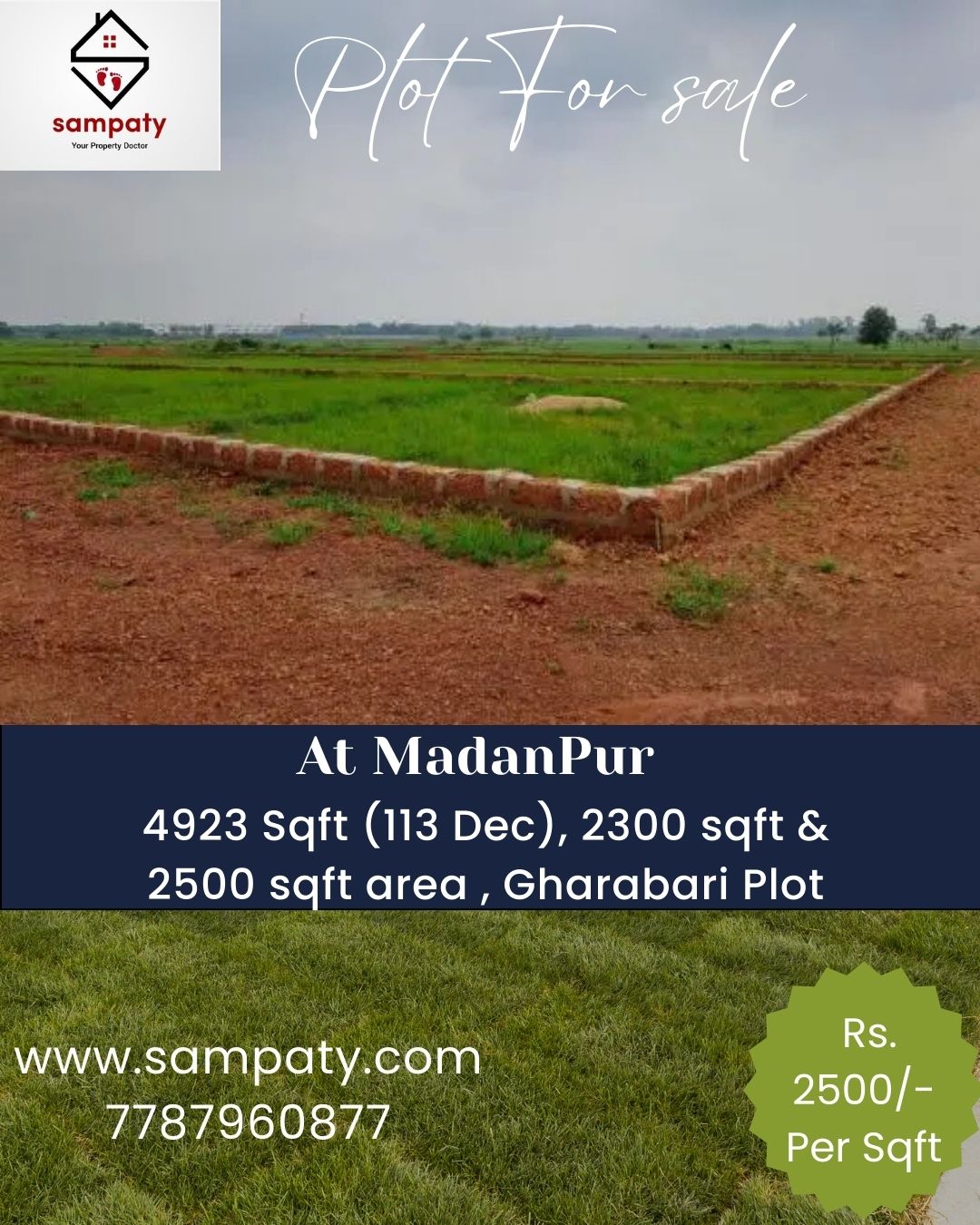 4922 sqft (113 Dec) & 2500 Sqft & 2300 sqft area @ Rs.2500/- Per sqft GB plot for sale at Madan Pur Near Sanskrit Cultural University.