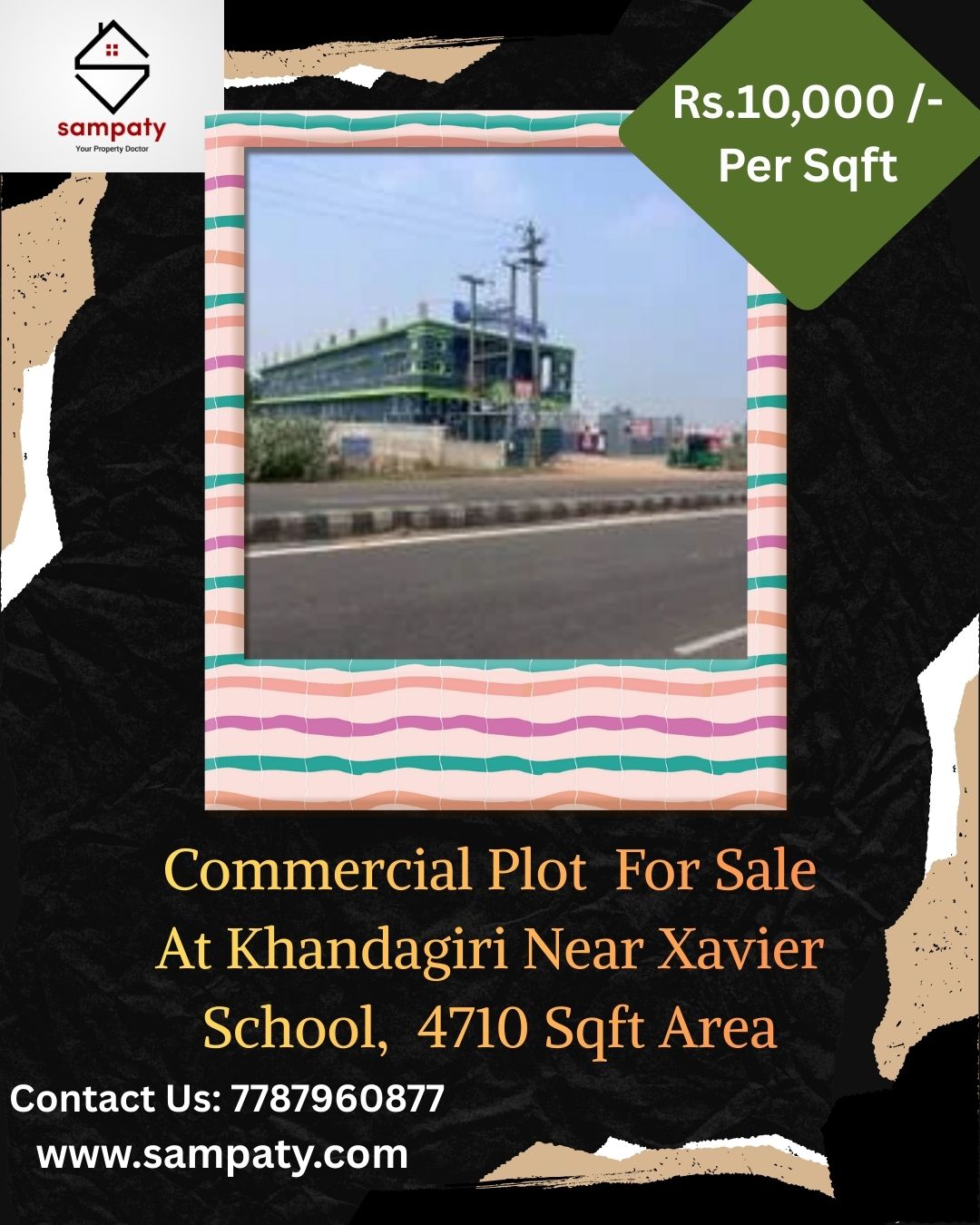 4710 Sqft area @ Rs.10000/- per sqft Commercial plot (G+2 Approved) for sale at Khandagiri near Xavier School.