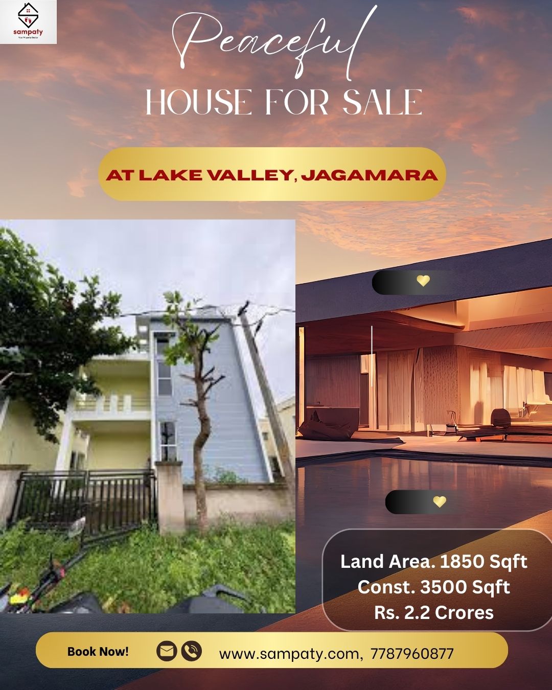 1850 sqft Land area, 3500 sqft Construction @ Rs. 2.2 Crores House for sale at Lake Valley, Jagamara.