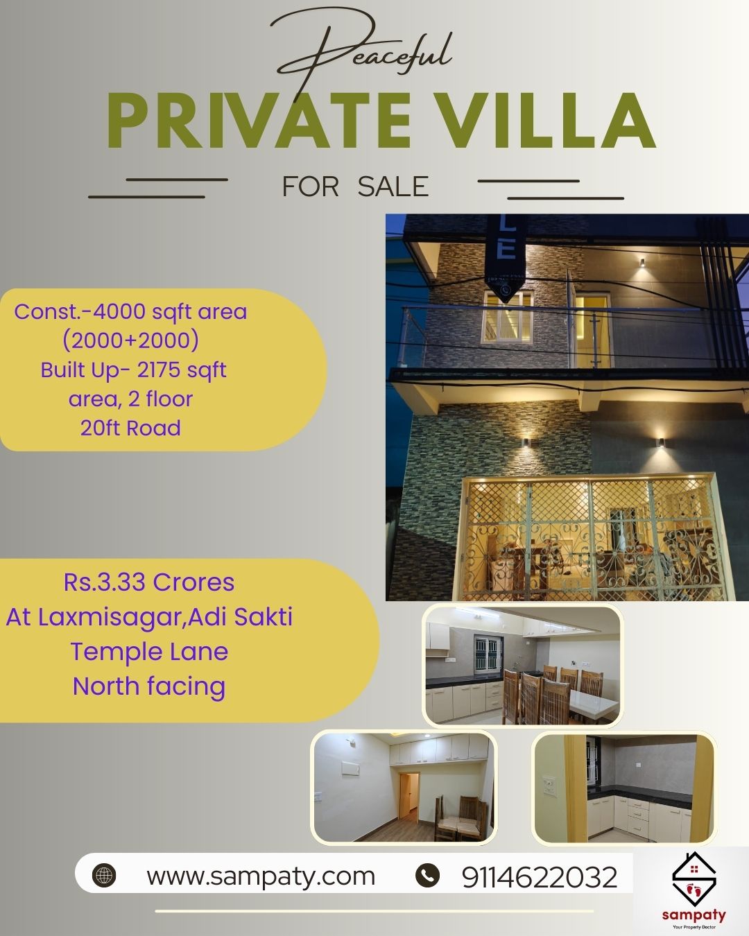2175 sqft Built up area , (2000+2000) 4000 sqft Construction@ Rs.3.33 Crores North facing, 20ft Road, Independent Duplex for sale at Laxmisagar near High School.
